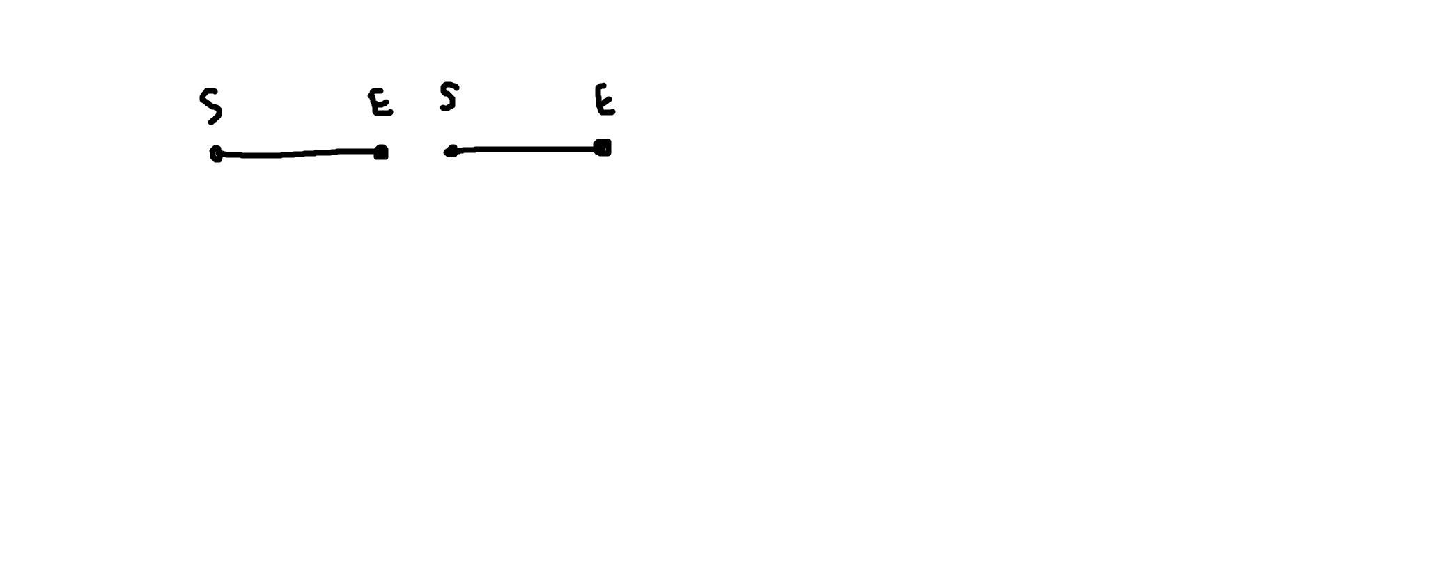 - 그렇게 정렬한다면 경우는 굉장히 한정적으로 변한다. 무조건 start 값은 순차적이고 start가 같다면 end가 순차적이다. 그때의 경우를 생각해자.