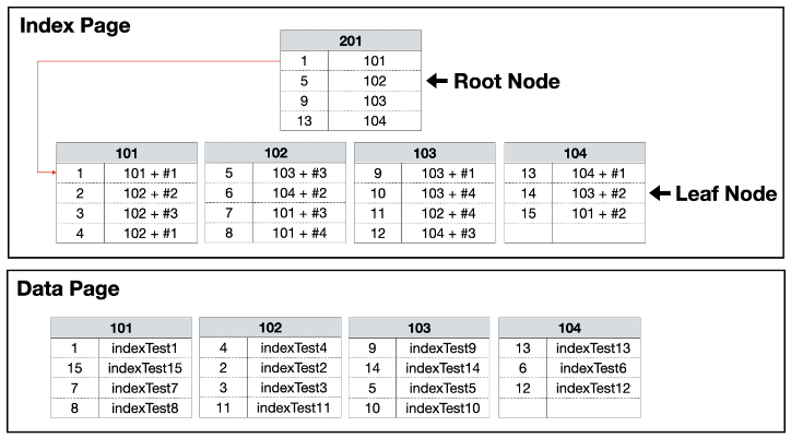 - 리프 페이지 이용 → 클러스터형 보다 조회 느림