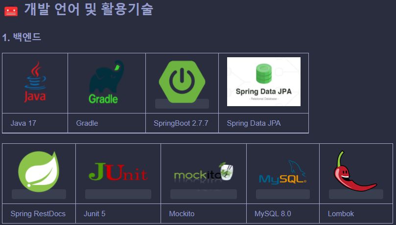 - 백엔드 서버 구현을 위해서 Java/Spring 기술 스택을 사용했고 build tool은 Gradle을 이용했습니다.