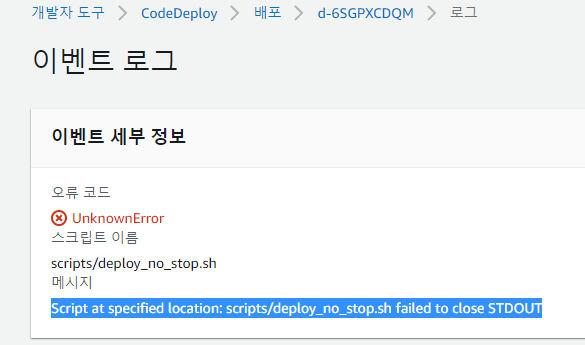 되겠지 생각하면서 모르고 있다가 어느 순간 확인해보니까 배포가 안되는 것 같았고 AWS를 보니까 배포가 계속 실패하고 있었습니다.